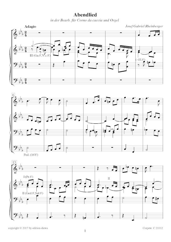 für Corno da caccia in B/C (Flügelhorn) + Orgel