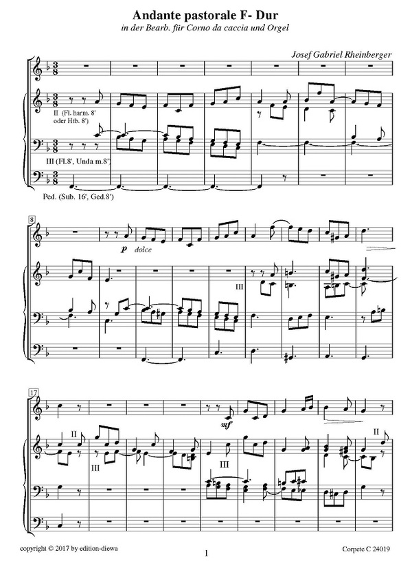 Andante Pastorale F-Dur aus der Orgelsonate Nr. 4 op. 98