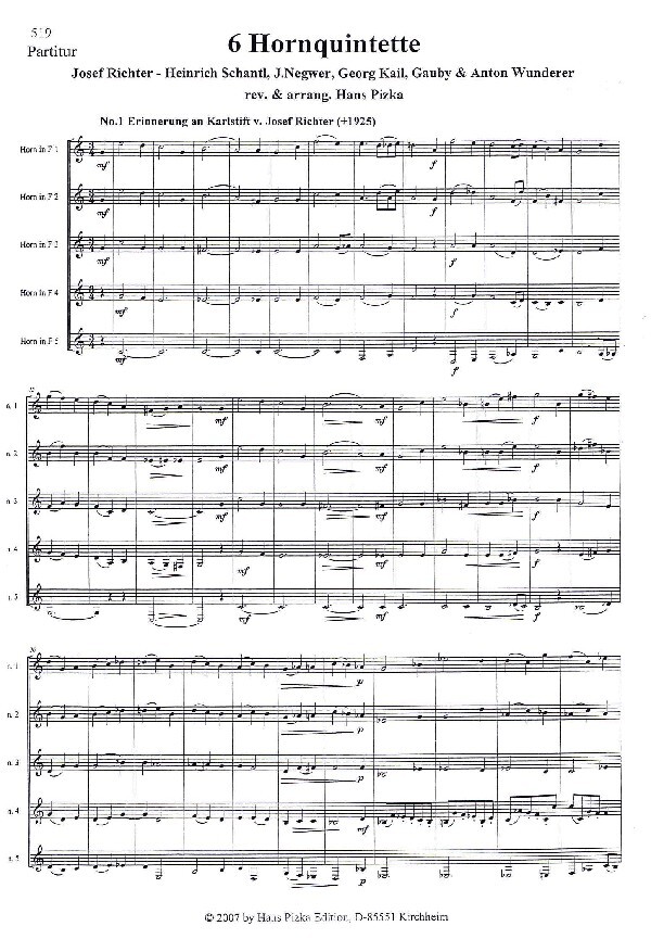 Sechs schöne volkstümliche Stücke für 5 Hörner