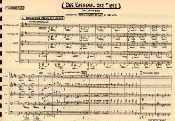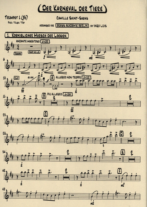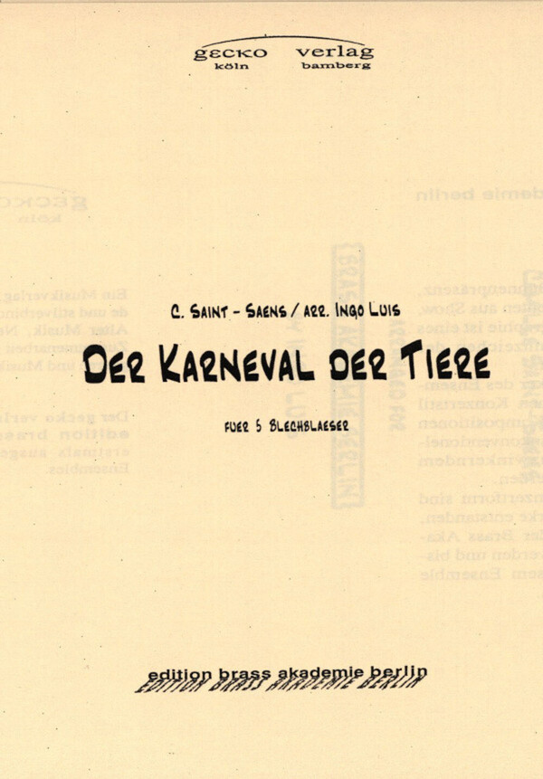 Königlicher Marsch der Löwen Hühner und Hähne Der Elephant Schildkröten Känguruhs Der Kuckuck Der Schwan Finale Encore-Music edition brass akademie berlin
