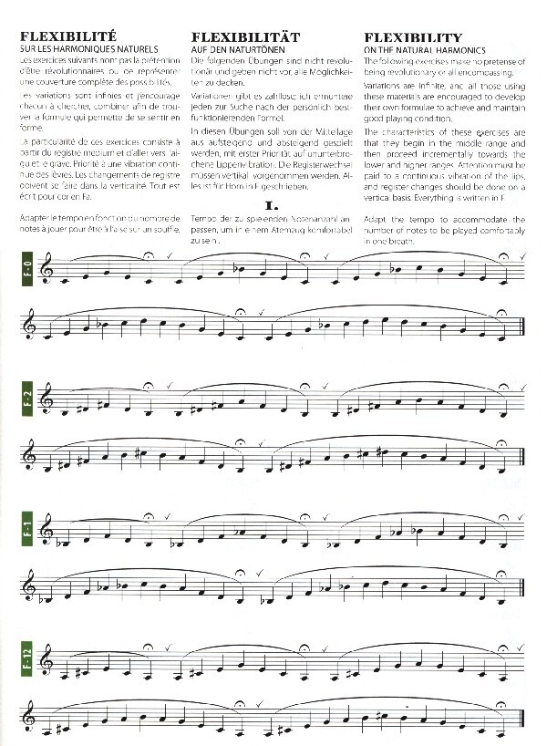 2) Fast flexibility exercises on the F, B-flat and optional high E-flat horn