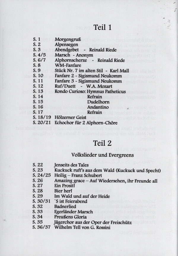 Nach 8 Jahren erscheint nun der Folgeband des 1990 erschienenen 1. Alphornbandes "Ein Alpentraum". Er setzt die Konzeption des ersten Bandes dergestalt fort, daß er im 1. Teil Originalkompositionen für Alphörner und im 2. Teil Bearbeitungen von bekannten Melodien bringt.