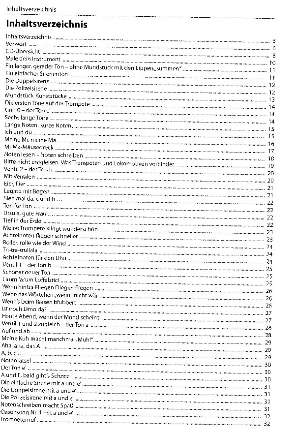 Die erfrischend neue Unterrichtsmethode für Kinder ab 6 Jahren Diese liebevoll und fantasievoll konzipierte Trompetenschule für Kinder unterscheidet sich von den herkömmlichen Trompetenschulen grundlegend. Sie geht von der Erlebnis- und Gedankenwelt der Kinder aus, spricht die kindliche Fantasie an mit altersgemäßen Texten und Illustrationen, ohne dabei je kindisch zu werden. Von Beginn an wird größter Wert gelegt auf einen bewusst geformten Ton, der leicht von den Lippen geht. Auf einen gründlichen Ausbau der Tonqualität in der mittleren und tiefen Lage wird besonders Wert gelegt.