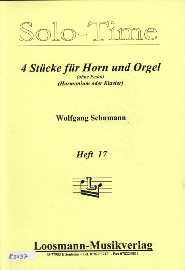 Verlag: Loosmann MusikverlagStil: RomantikAusgabe: NotenArt-Nr.: R2137 / S0314