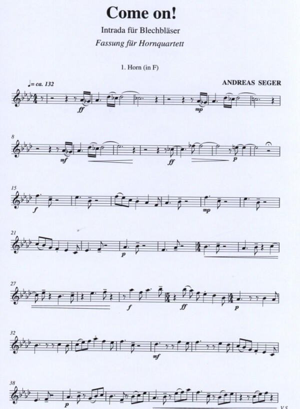 (Intrada für Blechbläser, 2003, modernes Stück, als Eröffnung eines Konzertes oder Festaktes, alle 4 Stimme n sind im Violinschlüssel, 4 Spielpartituren)