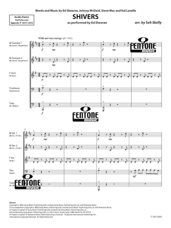Der britische Popsänger Ed Sheeran schrieb Shivers am Ende seiner Divide-Tour. Bemerkenswert ist, dass er drei Tage brauchte, um dieses Lied zu schreiben, was für ihn ungewöhnlich lang ist. Da der Song so besonders für ihn war, wollte er sichergehen, dass er großartig wird. Diese Äußerung inspirierte Seb Skelly dazu, daraus ein fantastisches Arrangement für Blechbläserquintett zu erstellen.