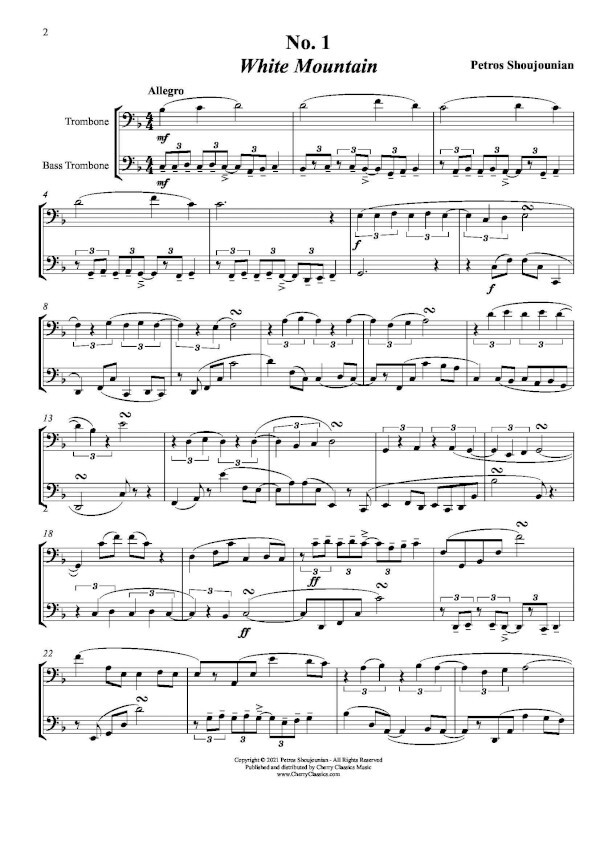 These Twelve Duos are appropriate for advanced performers. The collection contains duets to be performed on Alto, Tenor, and Bass Trombones.