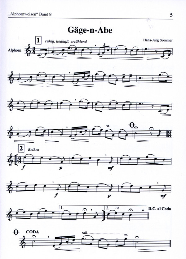 Sammelband mit Alphornweisen in unterschiedlichen blastechnischen Schwierigkeitsgraden und unterschiedlicher Besetzung (Solo, Duo, Trio, Quartett oder Gruppe).