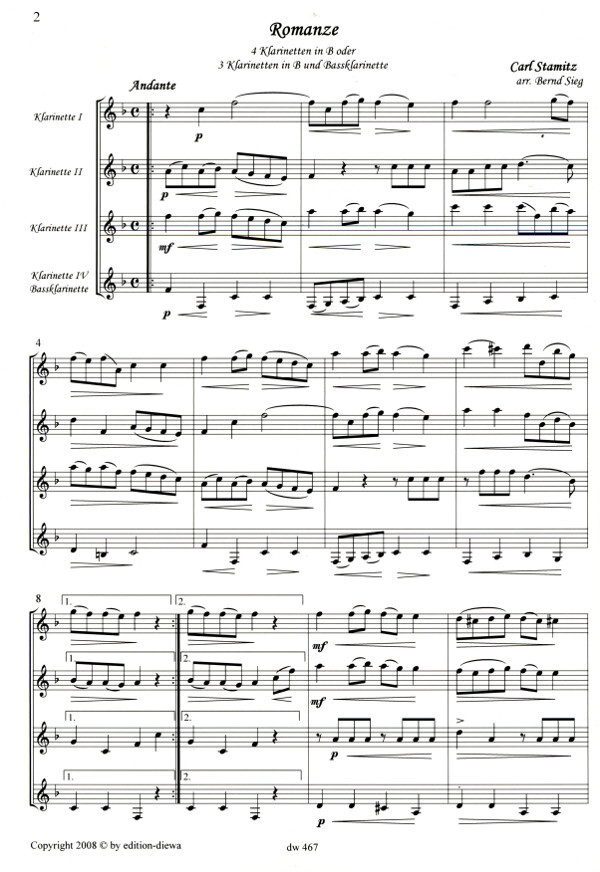 für 4 Klarinetten in B (3 Klar + Bassklar)