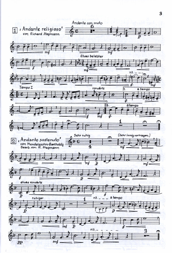 Haydn: Andante aus dem Trompetenkonzert in Es-Dur ("Dieses Andante ist "original" in As-Dur notiert ! Um es für alle Trompeter spielbar zu machen, habe ich es eine kleine Terz tiefer gesetzt !", Richard Stegmann)