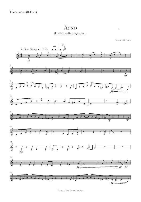 Flügelhorn (oder Trompete) in B, Horn in F (oder 2. Flügelhorn in B), Posaune und Bassposaune (oder Tuba)