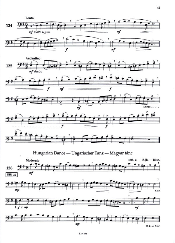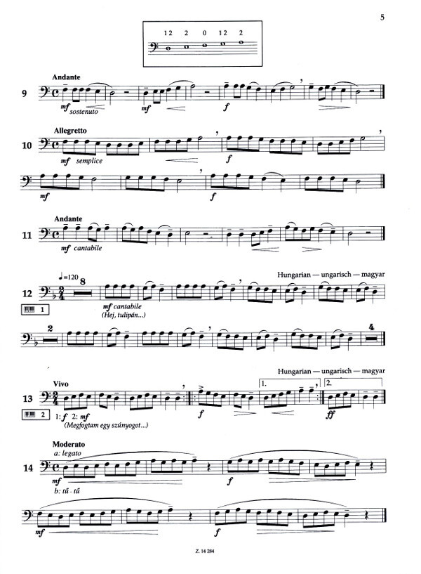 The baritone (euphonium) is an important basic instrument in brass ensembles. The blowing technique is similar to that for the trombone and tuba, but the grip and handling technique are easier, thus it can be learnt as a preparatory instrument for them, from the age of 8 or 10. From the initial steps, first with breathing exercises, lip and mouthpiece exercises, then in ascending order of difficulty and gradually increasing the range of notes used, this volume provides daily exercises, scales, etudes, folk tunes and performance pieces, initiating the learner in the art of playing the baritone. The textual instructions are supplied in three languages: German, English and Hungarian.