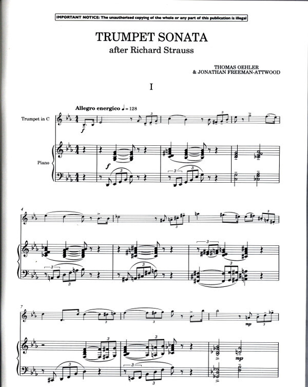 Wenn es einen Komponisten der modernen Zeit gibt, von dem sich Instrumentalisten eine Sonate oder ein Konzert ersehnen, dann ist es wohl Richard Strauss. Seine breitgefächerten orchestralen Kreationen und sein Opernschaffen sind voller idiomatischer Stellen für jedes Instrument, und doch können nur Klavier, Violine, Klarinette (zusammen mit Fagott), Oboe und Horn für sich in Anspruch nehmen, dass Strauss für sie maßgeschneiderte Solowerke komponiert hat, auch wenn diese Stücke zusammengenommen nur einen kleine Teil des überaus produktiven Schaffens des Komponisten ausmachen. Mehr als eine bloße Transkription, geht diese dreisätzige Sonata after Richard Strauss über ein Neuverwendung der Musik Strauss in einem neuen Idiom hinaus. Sie füllt die klaffende Lücke im 'seriösen' spätromantischem Repertoire für Trompete und kann als Ganzes oder einzeln als Drei Konzertstücke aufgeführt werden.