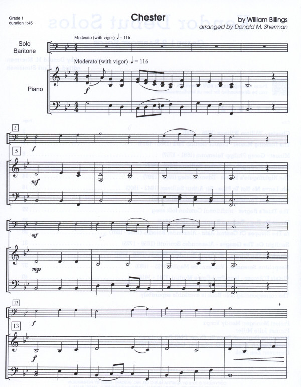 Designed for a first contest or recital performance, this grade 1-2 collections contain 14 pieces that have been carefully edited by baritone specialist Donald Sherman, and edited by Carl Strommen. The free downloadable piano accompaniment MP3s will be an invaluable tool for students. Piano accompaniment book sold separately