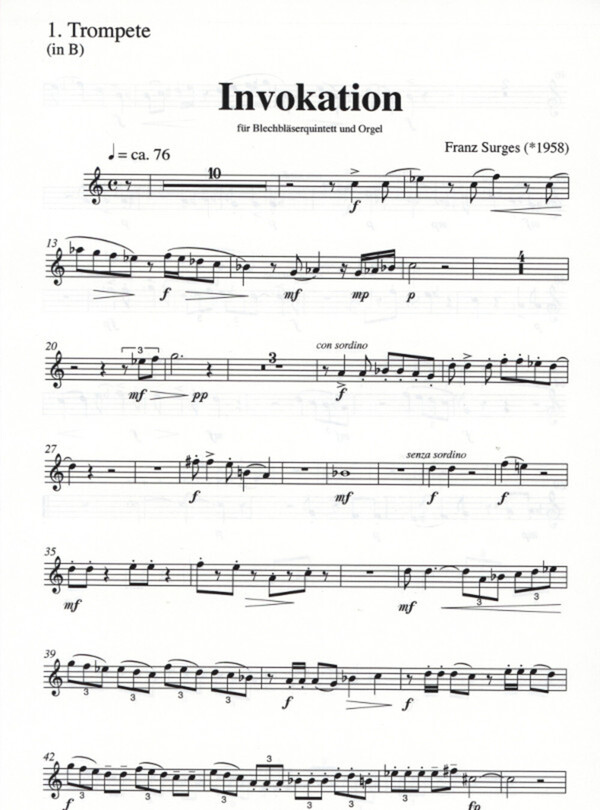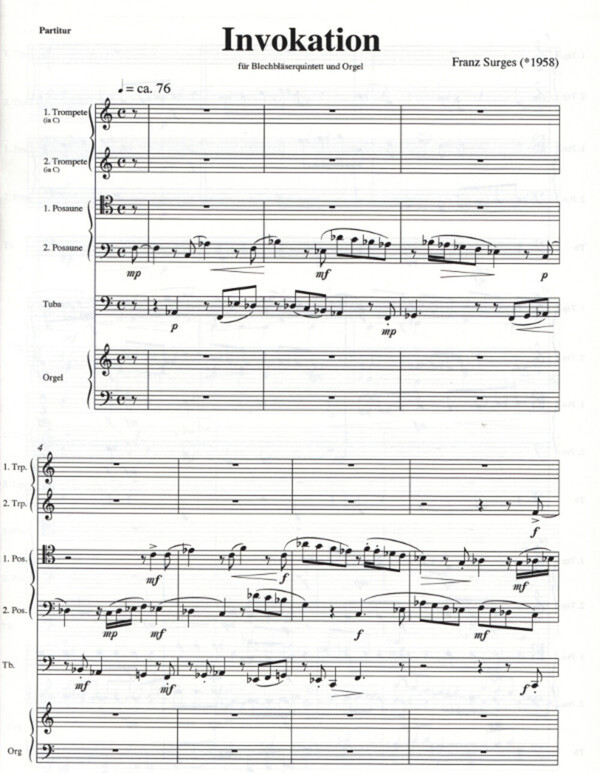 für 2 Trompeten in B/C, Posaune (Horn in F), Posaune, Tuba + Orgel