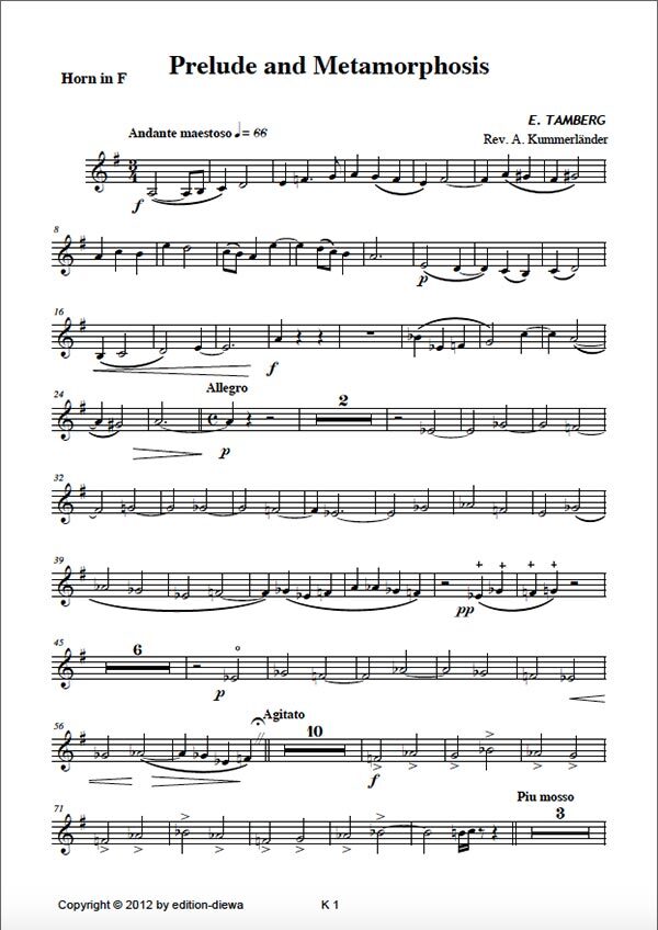für Horn in F, Violine + Klavier