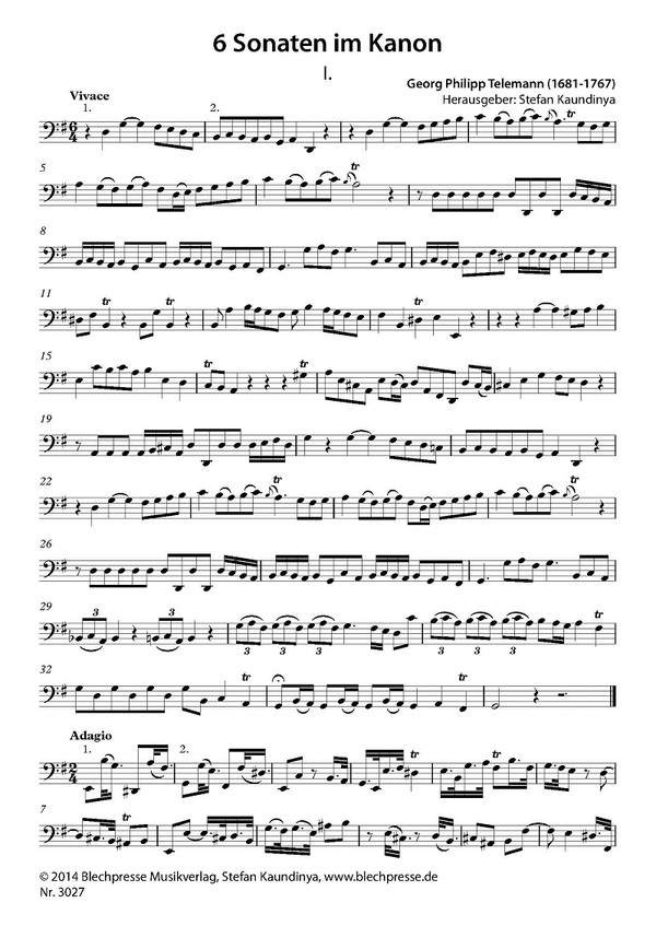 Diese 6 Sonaten (im Original für Flöte) bestehen aus jeweils 3 Kanons. Insgesamt enthält das Heft also 18 Kanons des Barockmeisters. Ideal, wenn zwei Tubisten mal zusammen üben oder etwas aufführen möchten.