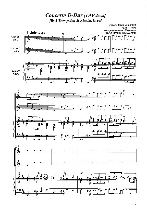 für 2 Trompeten in D und Klavier oder Orgel