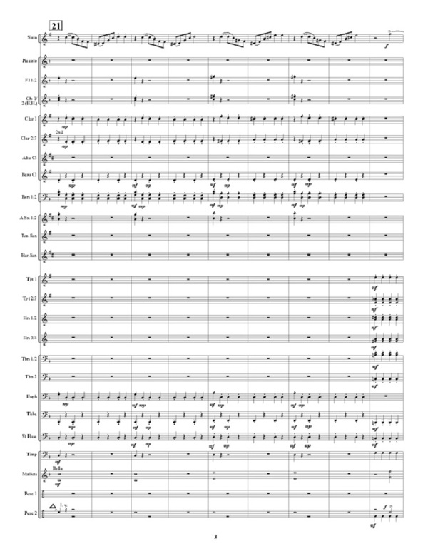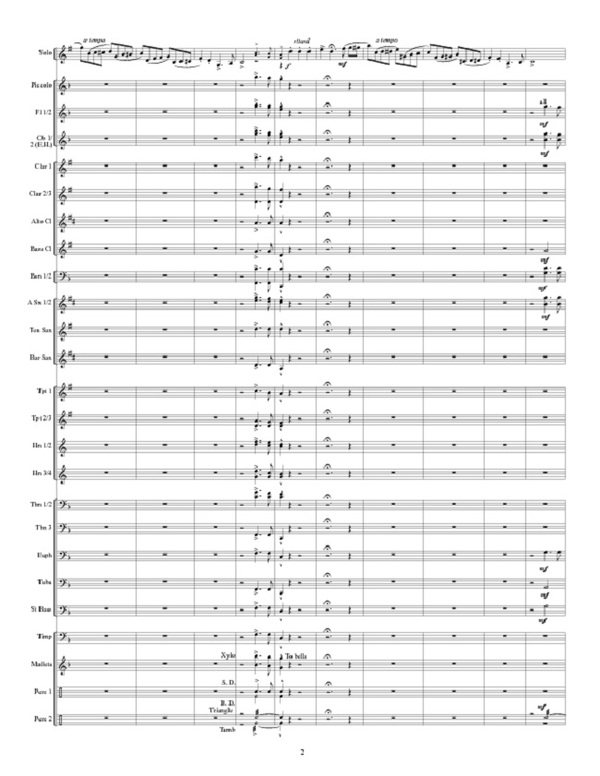 Sol o-Euphonium im Violinschlüssel + Blasorchester (Piccoloflöte, 2 Flöten, 2 Ob oen (2. Oboa auch Englischhorn), 3 Klarinetten, Alt-Klarinete, Bassklarinette, 2 Fagotte, 2 Altsaxophone, Tenorsaxophon, Baritonsaxophon, 3 Trompeten, 4 Hörner, 3 Posaunen, Euphonium, Tuba, Kontrabass, Pauken, Mallets + 2 Percussion)