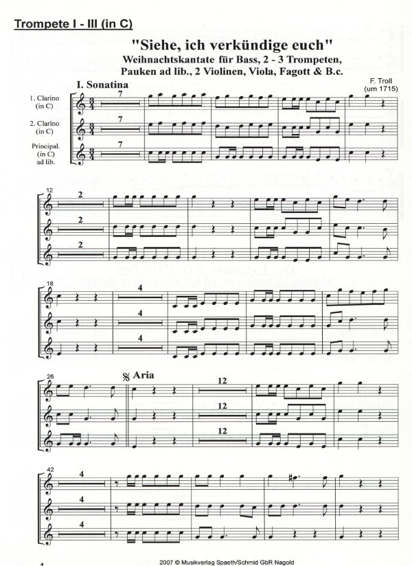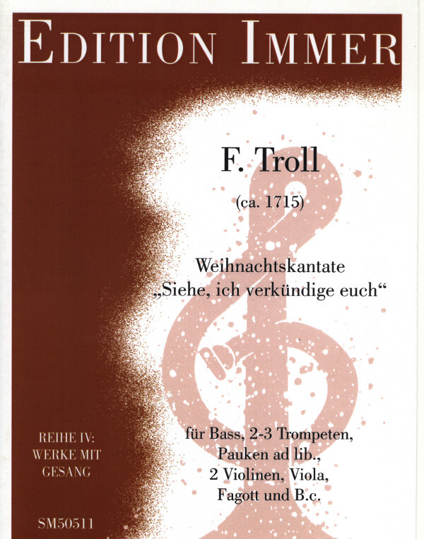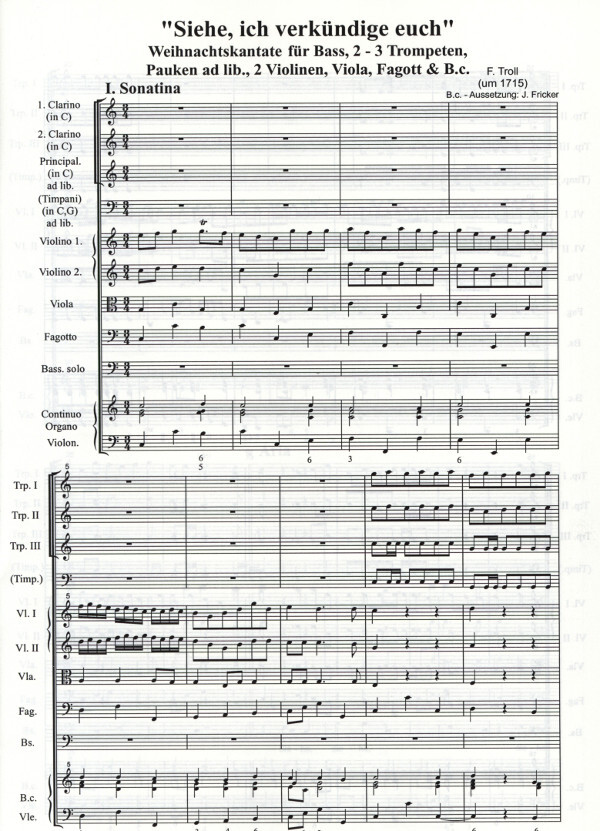 für Bass, 2-3 Trompeten, Streicher, Fagott. B.c. + Pauken ad lib.
