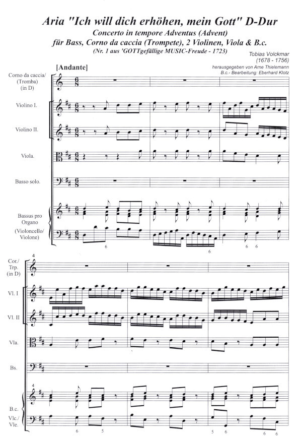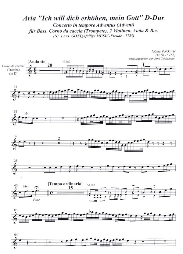 für Bass, Trompete (Corno da Caccia), 2 Vl, Vla & B.c.