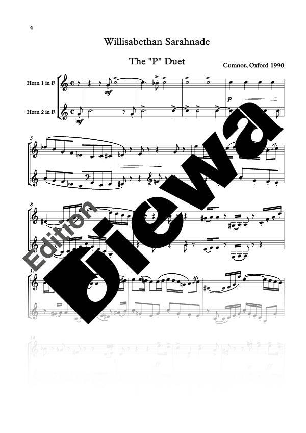 Sarah Willis and I have spent the past couple of decades on a deliciously wild journey together, both musically and geographically. The pieces in this little collection of horn duets have been inspired by the odyssey I embarked upon with this wondrous woman, marking particular high points of our mutual quest for instrumental transcendence. Only high points, you ask? Of course.