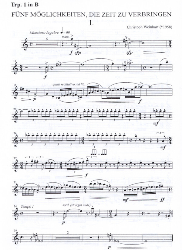 Vielfältige zeitgenössische Komposition mit Unterhaltungswert. Besetzung: Trompete 1 in B Trompete 2 in B Horn in F Posaune Tuba