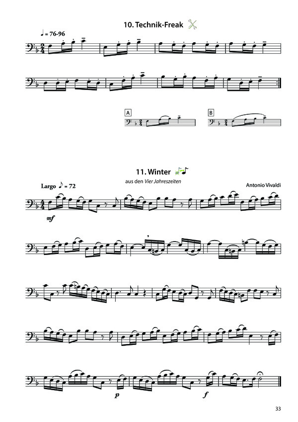 Zahlreiche Stücke, Duette, Rhythmusübungen und Tonleiterstücke mit praxisnahen Spielanweisungen