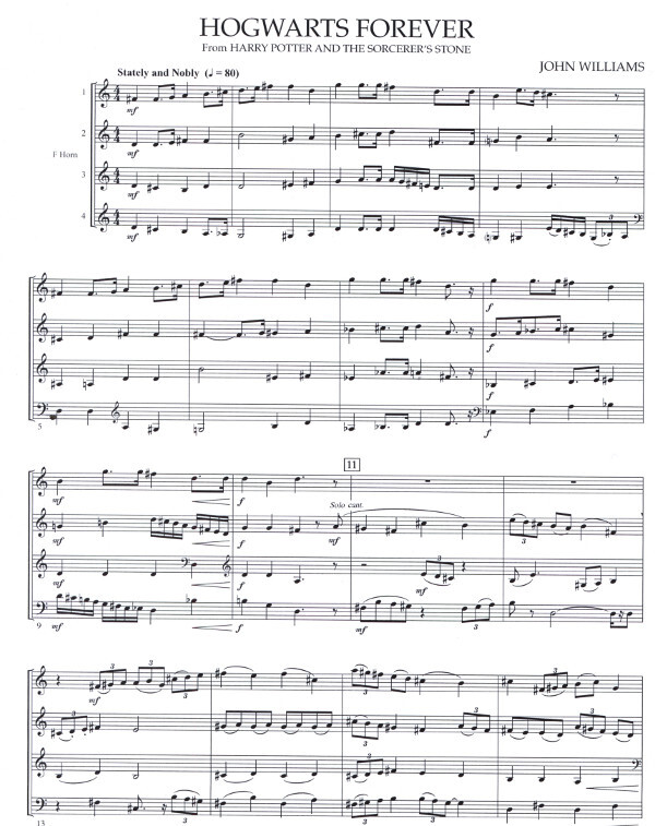 Die Filmmusik zu den Harry Potter Filmen ist legendär. Für ein Hornquartett wie geschaffen ist diese Melodie aus dem ersten Film Harry Potter und der Stein der Weisen.