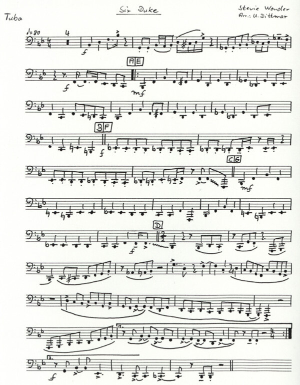 für 3 Trompeten, 2 Posaunen , Baßposaune.+ Tuba